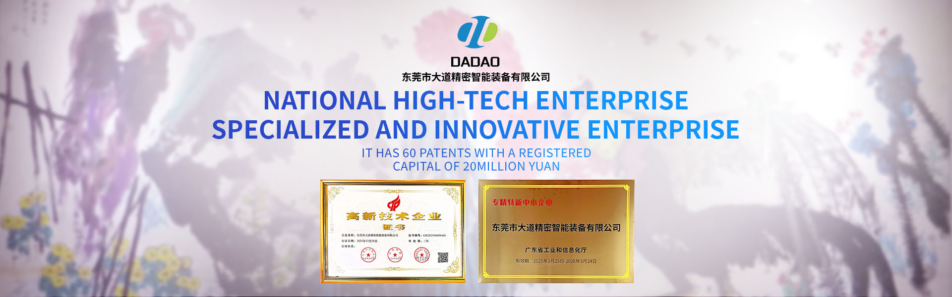 大道精密成立于2019年,公司注冊(cè)資本1000萬(wàn)元,擁有辦公室、廠房等18,000多平方米。已通過(guò)ISO9001:2015國(guó)際質(zhì)量管理體系認(rèn)證,擁有國(guó)家各類(lèi)專(zhuān)利共計(jì)58項(xiàng),獲得“中國(guó)大道.商標(biāo)”和“一帶一路十周年 .國(guó)禮品牌”等榮譽(yù)稱(chēng)號(hào),屬于國(guó)家高新技術(shù)企業(yè),專(zhuān)精特新中小企業(yè)。2023年4月成立了“東莞市大道精密智能裝備有限公司關(guān)心下一代工作委員會(huì)”,是東莞市企石鎮(zhèn)工商聯(lián)副會(huì)長(zhǎng)單位、東莞市企石鎮(zhèn)文學(xué)藝術(shù)界聯(lián)合會(huì)副主席單位、東莞市環(huán)保包裝行業(yè)協(xié)會(huì)副會(huì)長(zhǎng)單位、東莞市數(shù)控裝備行業(yè)協(xié)會(huì)第二屆會(huì)長(zhǎng)單位、廣東省包裝技術(shù)協(xié)會(huì)常務(wù)理事單位、廣東省膠粘劑行業(yè)協(xié)會(huì)理事單位、國(guó)家標(biāo)準(zhǔn)《機(jī)械安全中安全防護(hù)授權(quán)系統(tǒng)的基本要求》起草單位。
